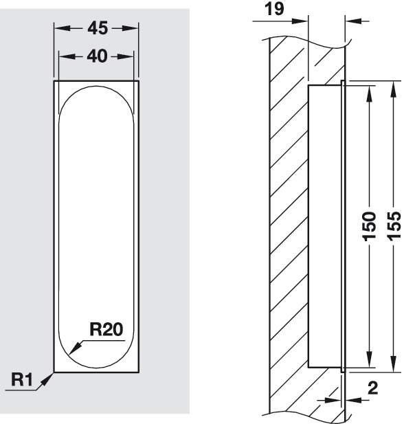 Технические характеристики Ручка врезная закрытая, серый 155x45 мм