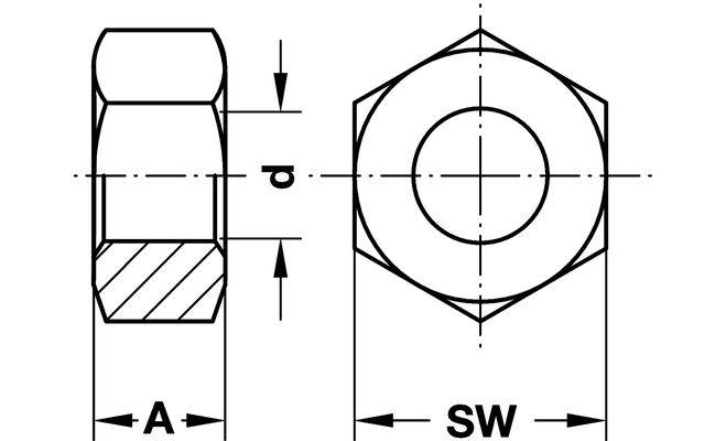 Технические характеристики Шестигранная гайка по DIN934 M6 (упаковка 250 шт) 03416906