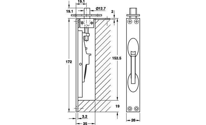 Технические характеристики Шпингалет врезной, латунь 26x172 мм