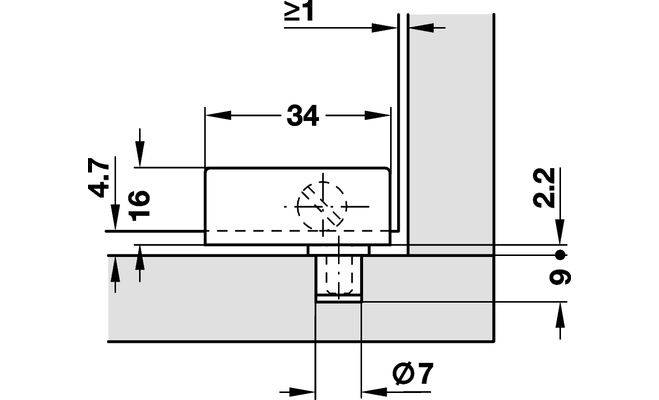 Технические характеристики Штифт петля для стекла толщиной до 6,5 мм 34 х 16 мм черный