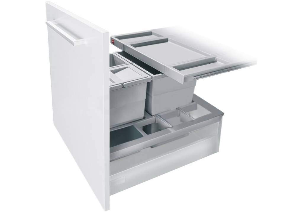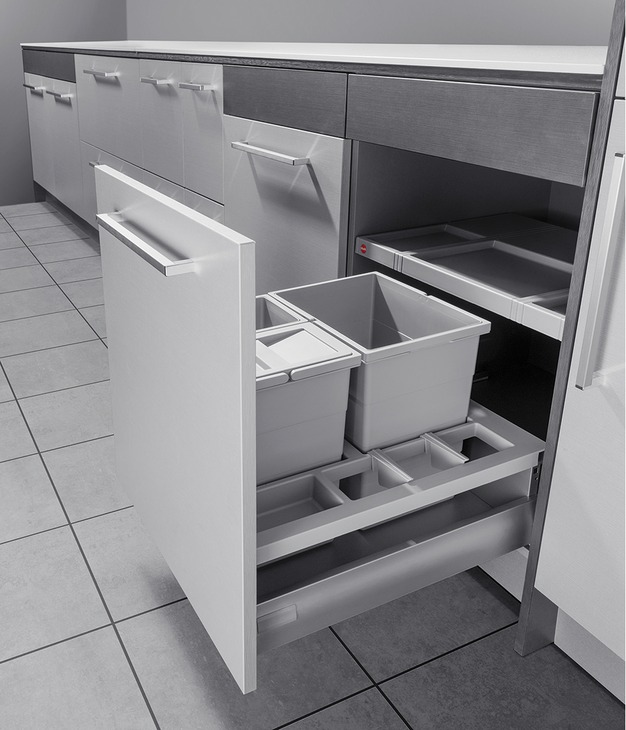 Описание Комплекс сортировки мусора для кухни 1х18л, 2х8л цвет серый, для ширины корпуса 600 мм