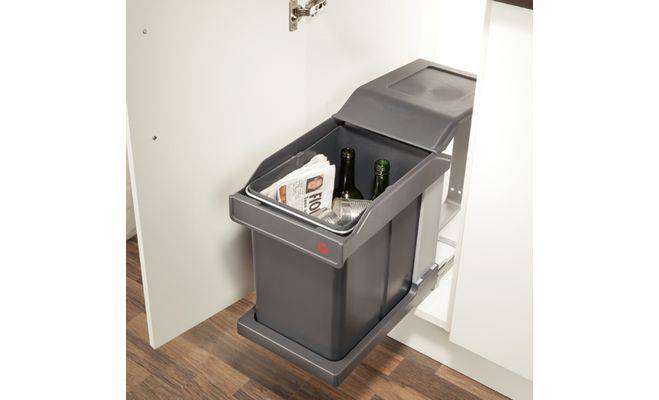 Описание Мусоросборник выдвижной встроенный 20 л, кремовый 242 x 422 x 410 мм для ширины корпуса от 300 мм