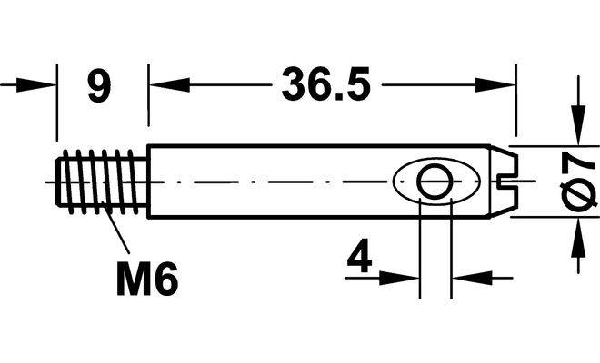 Соединяющий болт с резьбой М6, для отверстий диаметром 7,5 мм, изготовлен из оцинкованной стали. Длина резьбы болта 9 мм, размер сверления 28,5 мм.