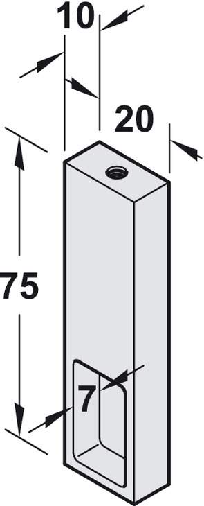 Технические характеристики Держатель гардеробной штанги, конечный 20 x 10 x 75 мм