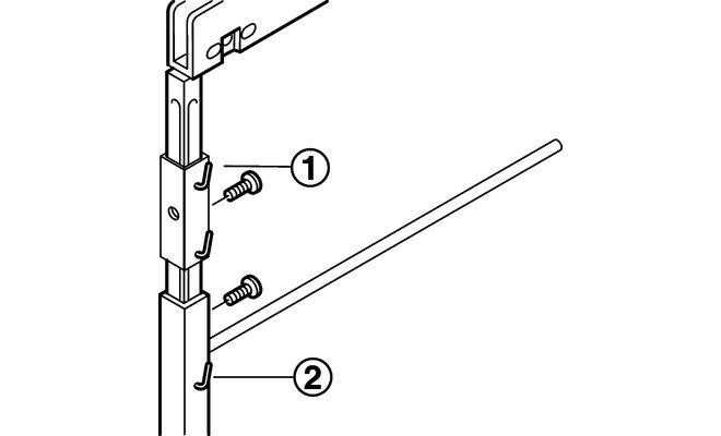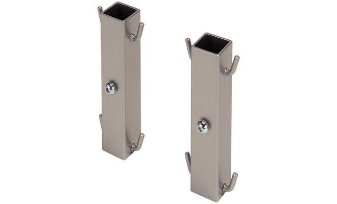 Держатели для корзин, для использования дальнейшых корзин при выдвинутой несущей раме. Держатель изготовлен из из стали с пластмассовым покрытием цвета белый алюминий. Высота держателя 125 мм.