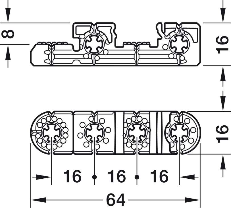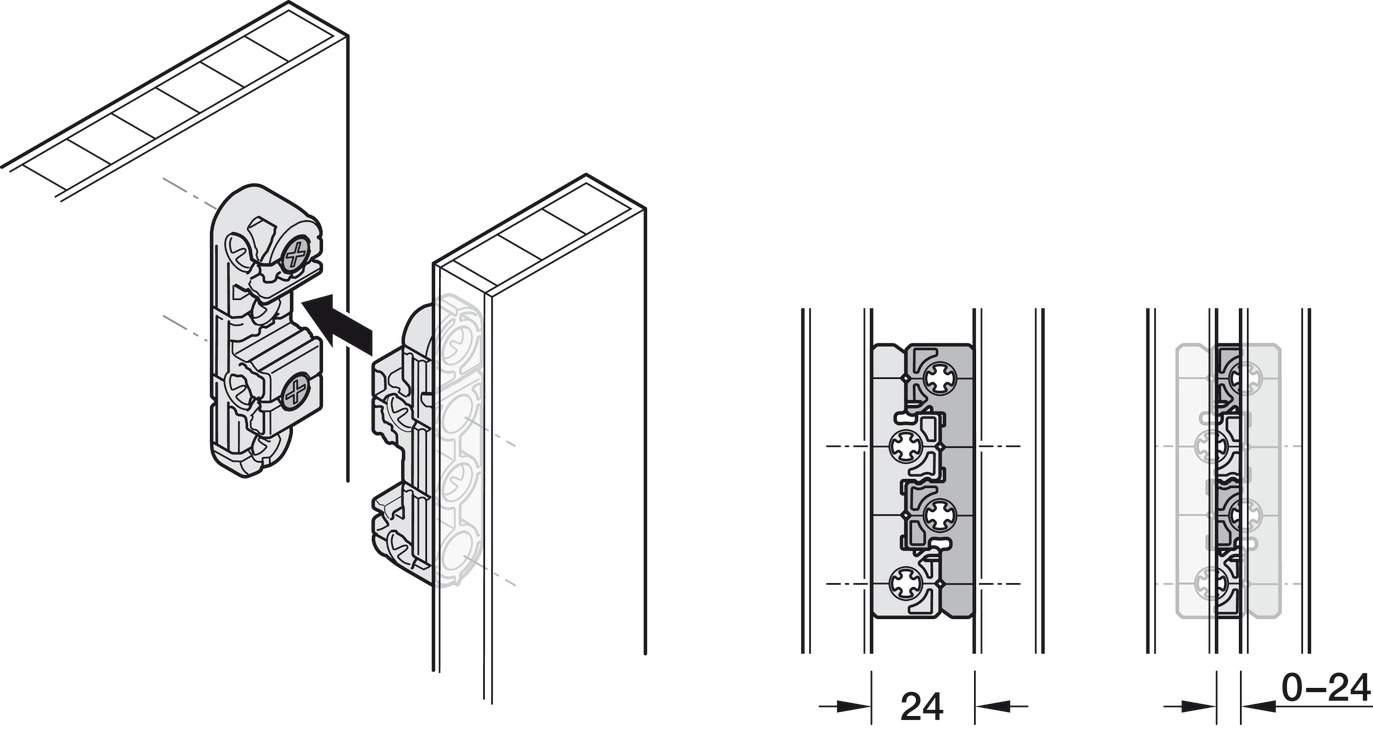 Описание Универсальный соединитель для съемных скрытых соединений панелей Hafele Ixconnect UC 16 64 26200100 (упаковка 25 шт) 26200100