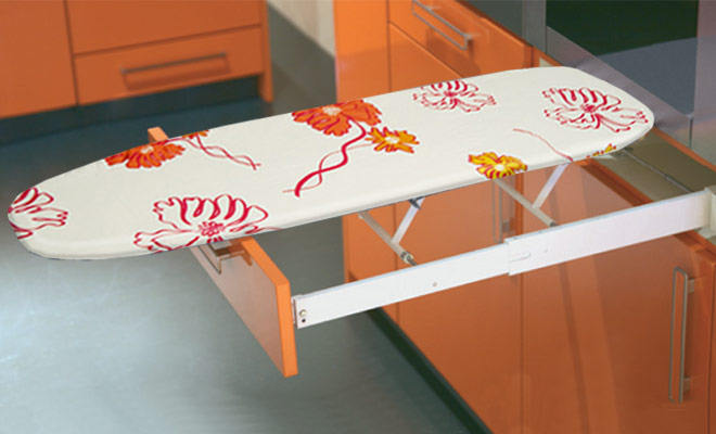 Описание Гладильная доска IRONFIX встроенная за лицевой панелью выдвижная белая чехол ы