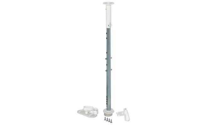 Трубчатая ось, с тормозом, с регулировкой по высоте, материал: ось: сталь, хромированная/опорные части: пластмасса, белого цвета, высота 652-717 мм, длина трубы 620 мм, диаметр 25 мм, в комплект входит: 1 трубчатая ось с рядом отверстий, 1 нижний подшипник со стопорной пластиной, юстировочной цапфой и топмозными кулачками, 1 верхняя тарелка опоры с телескопической втулкой, 2 поперечных штифта.