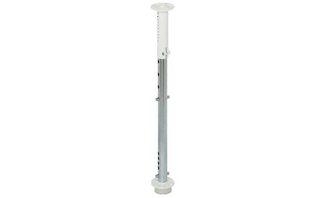 Трубчатая ось, с регулировкой по высоте, материал: ось: сталь, хромированная/опорные части: пластмасса, белого цвета, высота 472-537 мм, длина трубы 440 мм, диаметр 25 мм, в комплект входит: 1 трубчатая ось с рядом отверстий, 2 опорных плиты, 1 телескопическая трубка , 2 поперечных штифта.