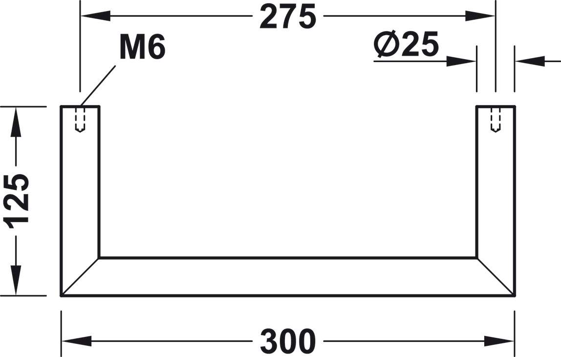 Технические характеристики Вешалка для одежды U - подобная нержавеющая сталь матовая 25 x 300 x 125 мм