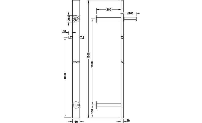 Описание Вешалка держатель нержавеющая сталь 220 x 1300 мм