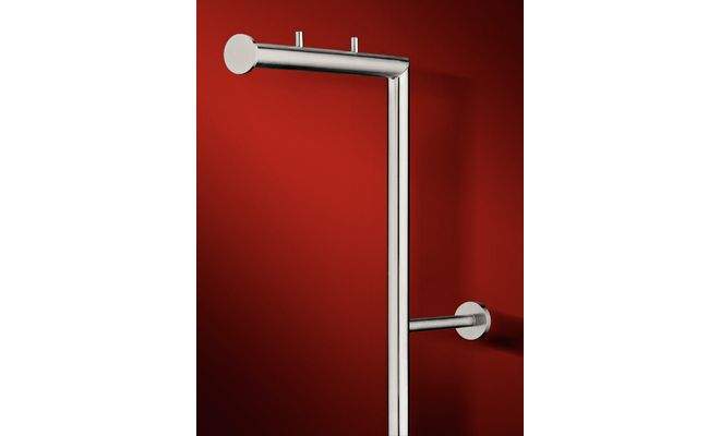 Гардеробная вешалка держатель для одежды, с тремя поворотными крючками, изготовлена из нержавеющей стали класса качества 1.4305, с матовой поверхностью. Вешалка монтируется с помощью прикручивания шурупами к стене.