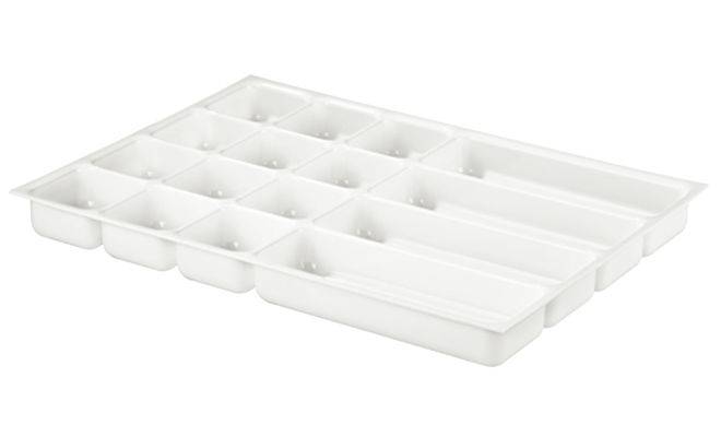 Вставка для инструментов с 16-ю секциями, изготовлена из пластика белого цвета. Длиной 411 и шириной 310 мм.