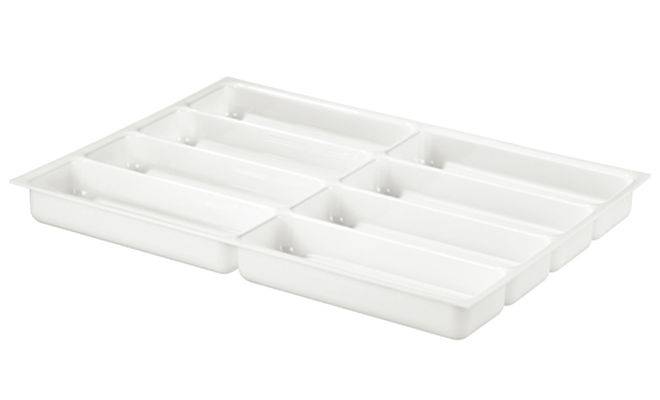 Вставка для инструментов с 8-ю секциями, изготовлена из пластика белого цвета. Длиной 411 и шириной 310 мм.