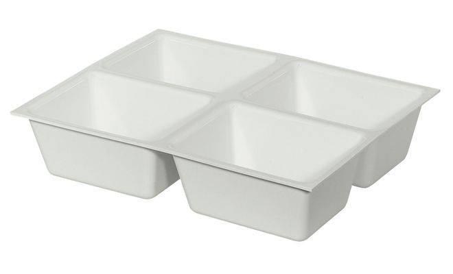 Вставка для инструментов с 4-мя секциями, изготовлена из пластика белого цвета. Длиной 411 и шириной 310 мм.