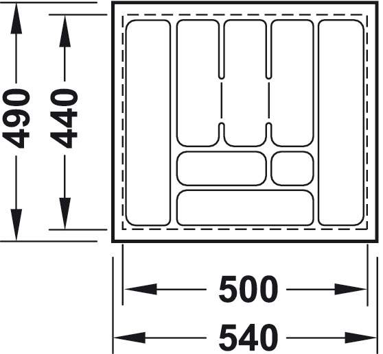 Описание Вставка для столовых приборов 540 x 490 x 54 мм пластмасса белая