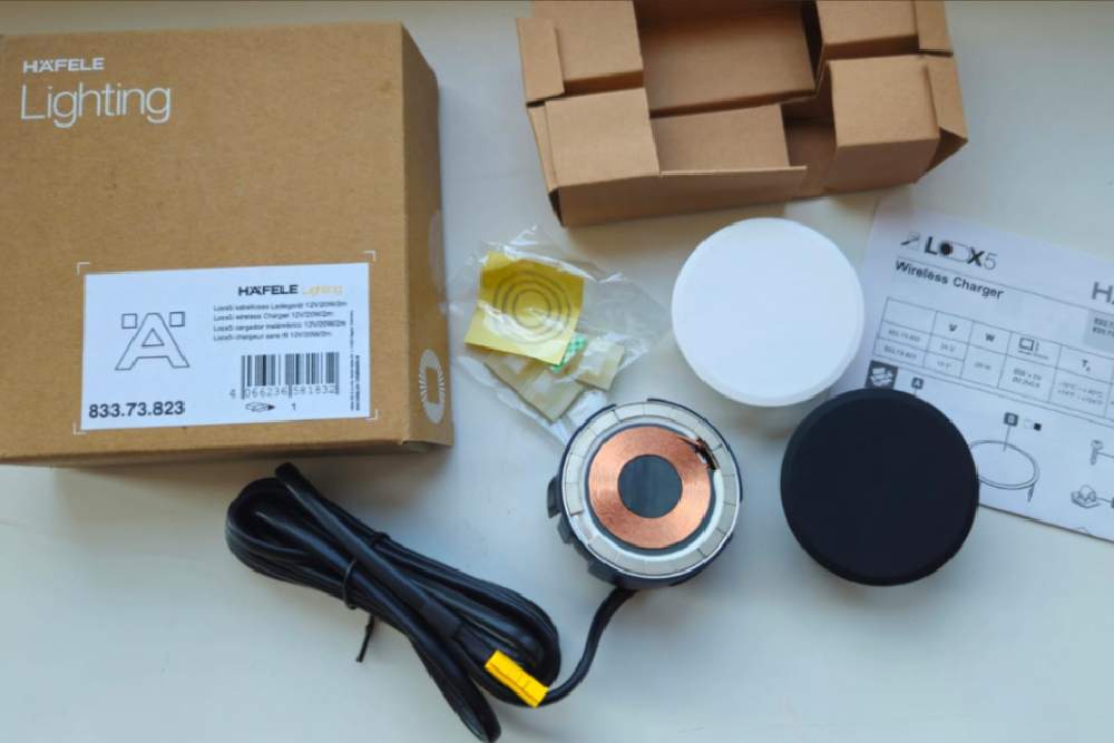 Описание Встроенная беспроводная Qi2 индуктивная зарядная станция Hafele Loox5 12 В, 15 Вт 2м кабеля