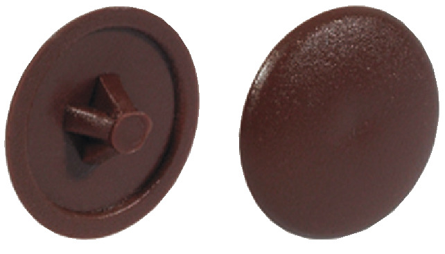 Заглушка для шурупов с крестовым шлицем PZ2, изготовлена из пластмассы коричневого цвета.