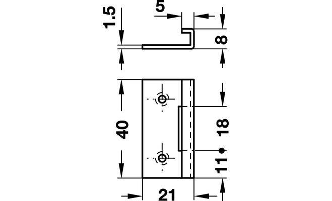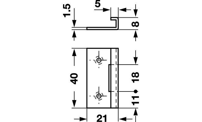 Технические характеристики Замыкающий уголок к замку 40 х 21 мм