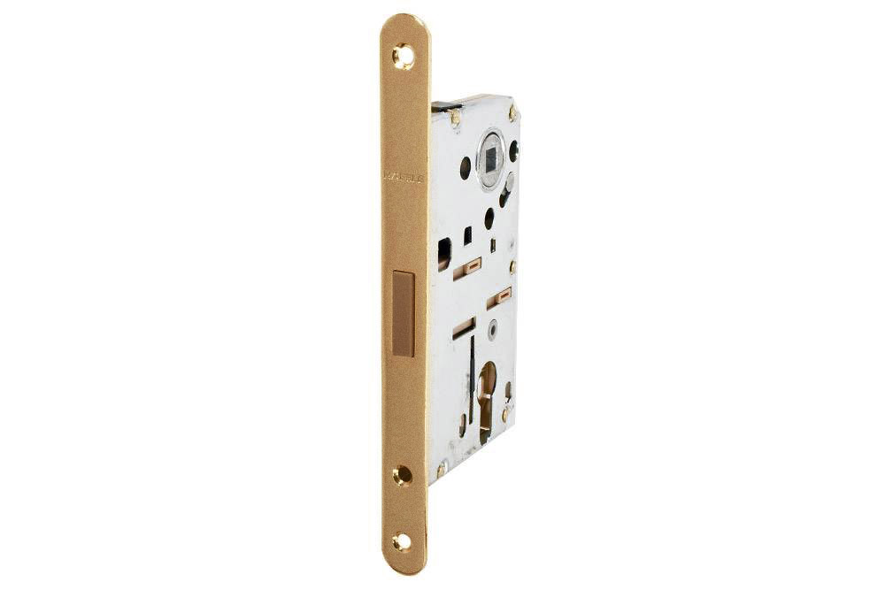 Магнитный замок для двери под цилиндр. Врезной, для дверей с фальцем и без фальца. Универсальный: правый и левый. Лицевая планка магнитного замка закруглённая. Лицевая планка: сталь, цвет: бронза. Размер под четырёхгранный штифт дверных ручек: 8 х 6 мм. Ширина лицевой планки магнитного замка: 18 мм. Высота лицевой планки магнитного замка: 196 мм. Глубина врезки магнитного замка: 75 мм. Ригель замка со встроенным магнитом. Монтаж путём врезания.