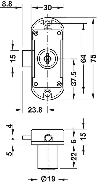 Описание Замок с поворотной штангой Econo d 19 х 22 мм c разными комбинациями закрывания крепление правое
