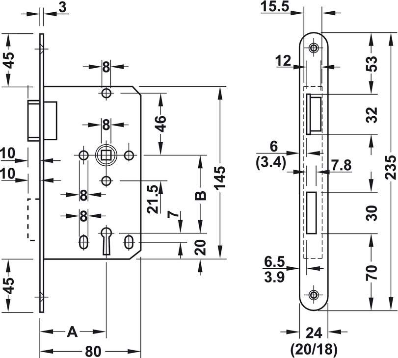 Технические характеристики Замок врезной К1 CВ правый, серебристый лакированный 18 55 72