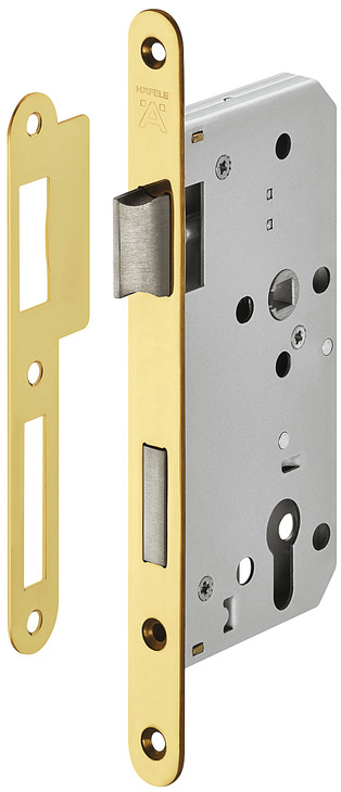 Замок врезной PC нержавеющая сталь цвет латунь 55 20, форма закругленная