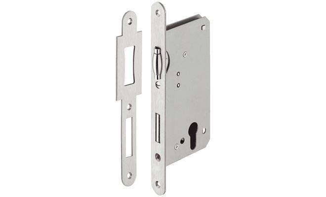Замок с роликовым язычком для профильного цилиндра, нержавеющая сталь 55 24 PC, с фиксирующим болтом