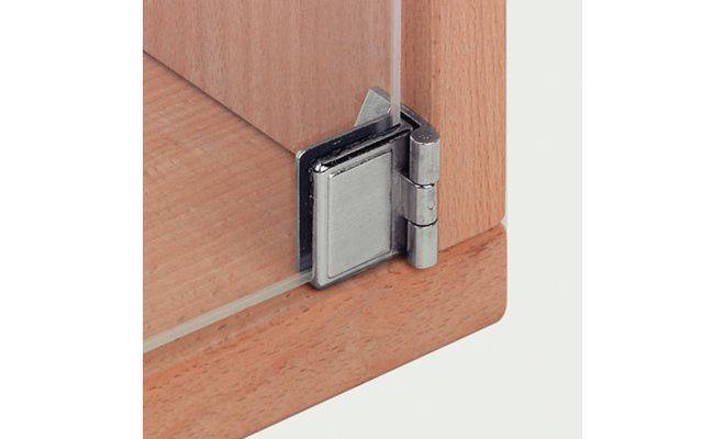Описание Петля для стекла толщиной до 5 мм с фиксатором 28 х 26 мм цамак никелированная