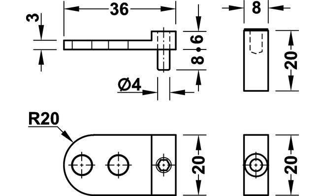 Петля для стеклянных дверей G H 20x20