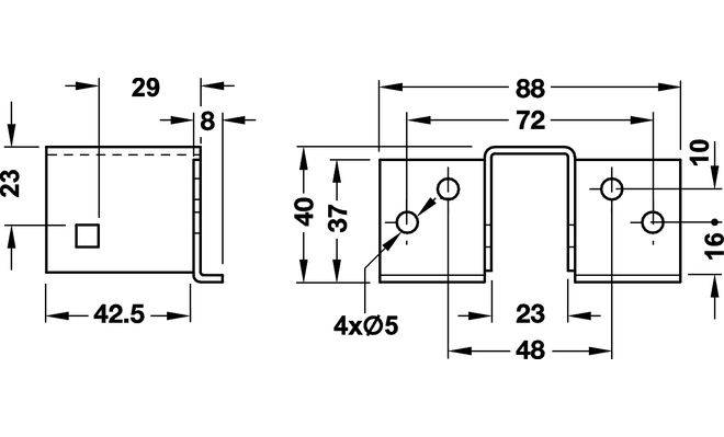 Соединитель для каркаса одно-и двуспальной кровати, для цоколя толщиной 23 мм, изготовленный из оцинкованной стали. Монтаж стяжки выполняется путем прикручивания шурупами.