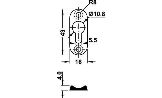 Пластина для навешивания на головки шурупов, для машинной врезки, с 1 продольной пазом. Пластина предназначена для винтов диаметром 5 мм, изготовлена из стали. Размеры пластины для навески: высота-43мм; ширина-16мм; толщина - 4,0 мм.. Монтаж выполняется путем машинной врезки и крепления, путем навешивания на шурупы для ДСП с полупотайной головкой.