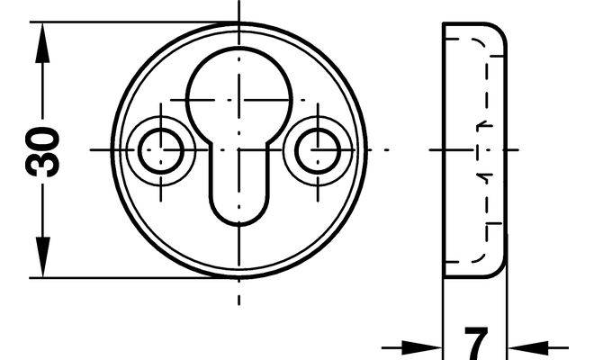 Соединитель каркаса кровати без предохранителя от снятия, изготовлен из стали. Размеры соединителя (мм): диаметр / толщина - 30/7 мм. Монтаж стяжки выполняется путем врезки и крепления, путем навешивания на шурупы для ДСП с плоскоконичною головкой 5 мм.