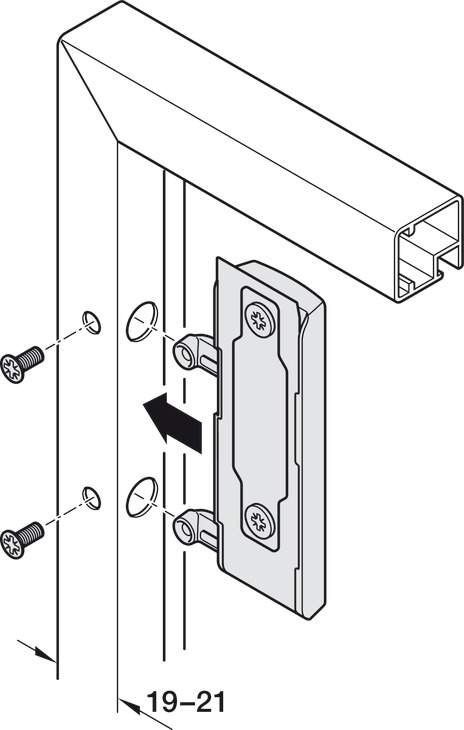Область застосування для стулок з алюмінієвим каркасом шириною 19–21 мм додаток до Häfele Free space 6.15 і Free space 5.15 push матеріал він знав