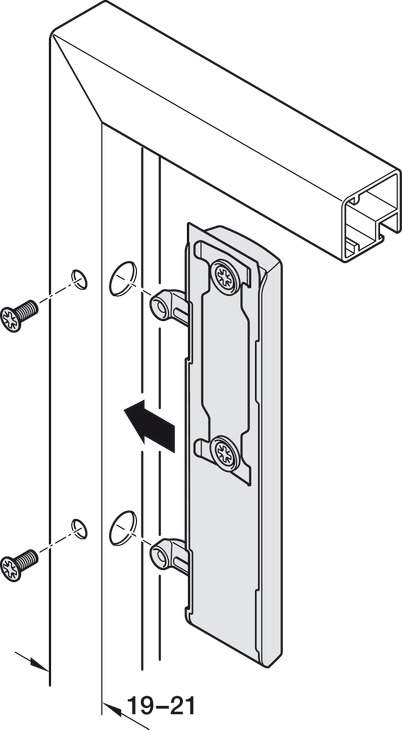 Область застосування для стулок з алюмінієвим каркасом шириною 19–21 мм додаток до Häfele Free space 6.15 і Free space 5.15 push матеріал він знав