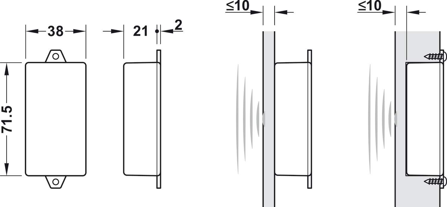 - Встановлення: Датчик прикручується до вибраної зони на розсувних дверях або прилеглому меблевому корпусі.