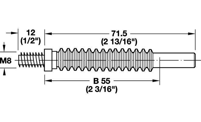З'єднуючий болт стяжки Confa 35 з різьбою М8, виготовлений з оцинкованої сталі. Розміри болта(мм) : розмір свердління/довжина - 35/64 мм.