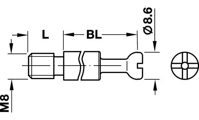 Технічні характеристики Болт стяжки MAXIFIX 66мм D8.6мм М8 11мм глибина свердління 55 мм (упаковка 10 шт) 26286912