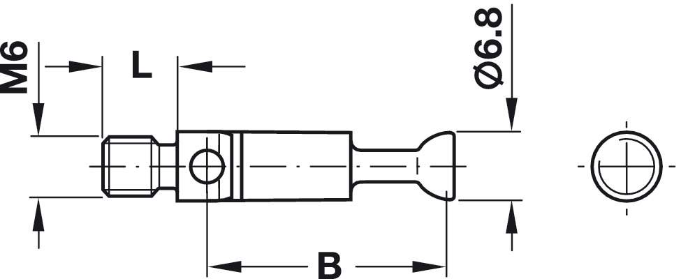 Опис Болт стяжки MINIFIX сталевий без покриття D6.8мм/44мм/ М6 (упаковка 100 шт) 26212082