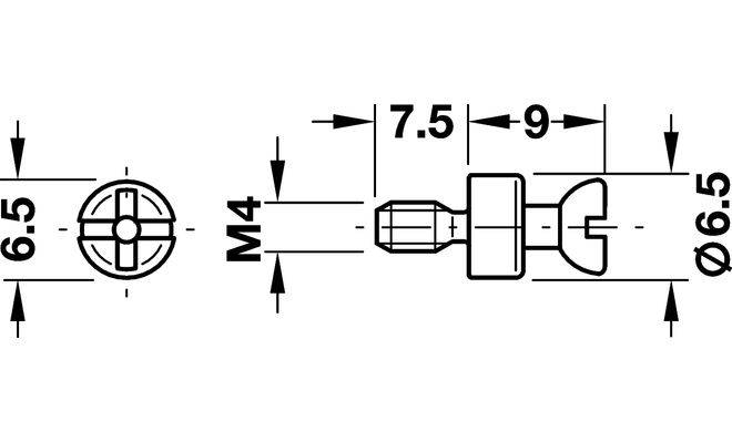 З'єднуючий болт стяжки Rafix, з різьбою М4, матеріал: сталь, оцинкована, довжина різьби 7,5 мм, для вкручування в отвір діаметром 5 мм або вставляння в отвір діаметром 8 або 10 мм за домопогою дюбеля.
