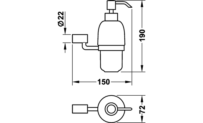 Технічні характеристики Дозатор для рідкого мила з тримачем латунь хромований полірований круглий 98062042