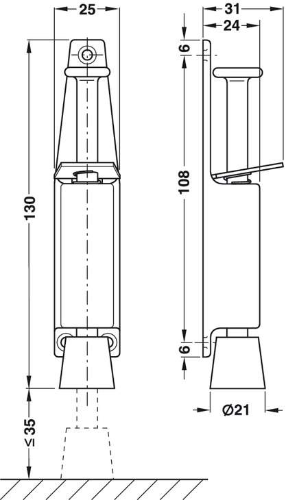Технічні характеристики Фіксатор дверей цинковий срібний лакований хід фіксатора 35 мм вага дверей 25 кг 93804001