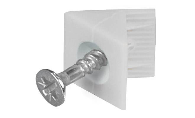 Опис Фіксатор задньої стінки 10x15 з шурупом пластик білий (упаковка 100 шт) 26009710