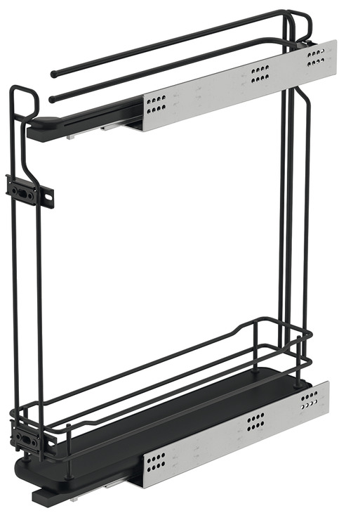 Опис Фронтальний висувний механізм для кухонних тумб 150 мм карго з доводчиком і вішаками для рушників 2-рівня антрацит дерев'яна полиця 54937310