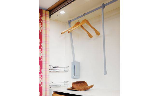 Гардеробний ліфт-пантограф значно полегшує користування високими шафами-купе. Завдяки йому можна раціонально використовувати навіть ті їхні ділянки, які раніше застосовувалися як антресолі для зберігання рідко використовуваних речей.