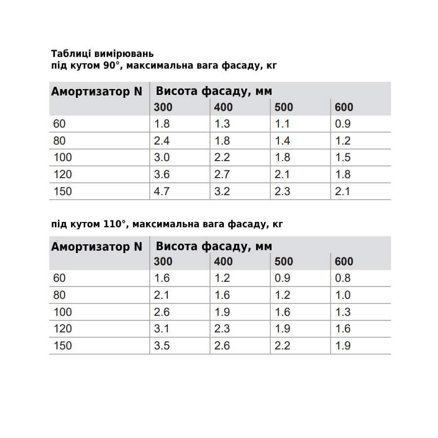 Дані про вагу стосуються однієї газової пружини. У разі використання двох газових пружин несуча здатність подвоюється. Для паралельного та синхронізованого відкривання великих стулок (600 мм ≤ ширина стулки ≤900 мм) рекомендується використовувати 2 газові пружини.