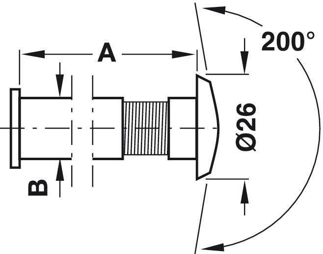 Технічні характеристики Глазок для вхідних дверей товщиною 36–55 мм латунь хромований B-14 мм 200 ° 95901000