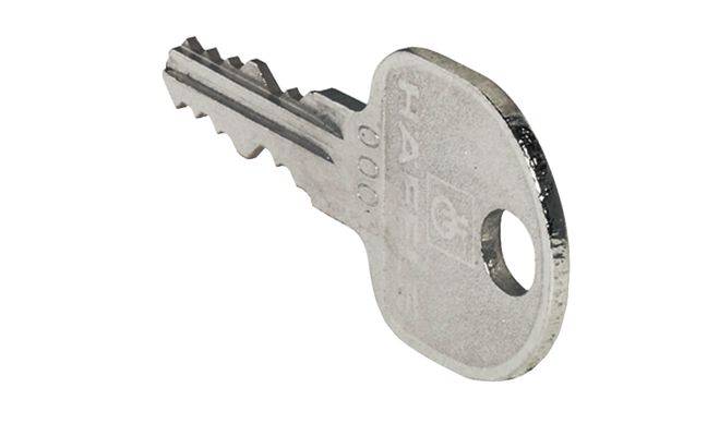 Ключ-майстер для змінного циліндра Häfele Symo EC Pure E1. Призначений для системи складів (Lagerschließanlage), використовується в індивідуальному замиканні (gleichschließend). Тип — HS1 (MK 1). Матеріал: сталь. Підходить для замикальних систем HS 1, HS 2 та HS 3.