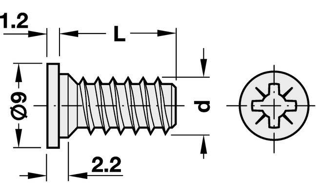 Гвинт для вкручування в алюміній, для отворів Ø 5 мм, виготовлений з нїкельованої сталі. Параметри гвинта: привід: хрестовий шліц PZ2, крок різьби 1,6 мм, зовнішній діаметр 6 мм, внутрішній діаметр 4,7 мм, довжина 10,5 мм.