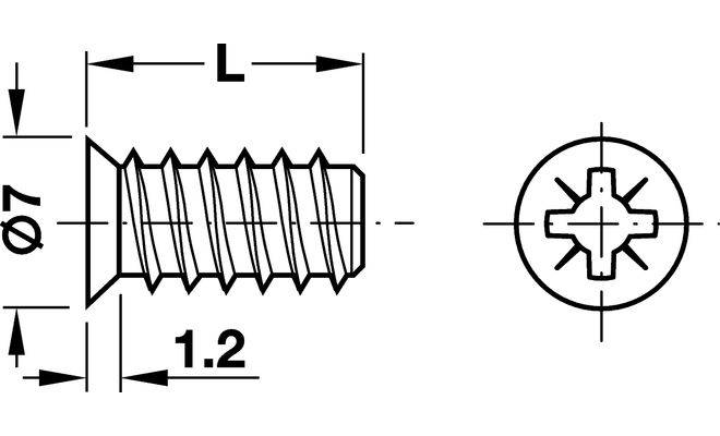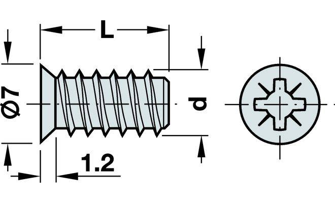 Гвинт для вкручування в алюміній, для отворів Ø 5 мм, виготовлений з нїкельованої сталі. Параметри гвинта: привід: хрестовий шліц PZ2, крок різьби 1,6 мм, зовнішній діаметр 6 мм, внутрішній діаметр 4,7 мм, довжина 10,5 мм.